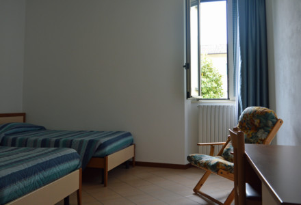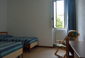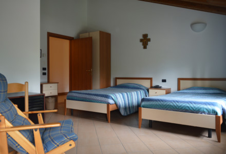 La casa dispone di 54 camere, tra singole, doppie e multiple, per una capienza complessiva di circa 110 posti letto. Tutte le camere sono dotate di bagno privato, riscaldamento, lenzuola e asciugamani e sono progettate con criteri di funzionalità e semplicità, adatte anche ad accogliere persone con disabilità.