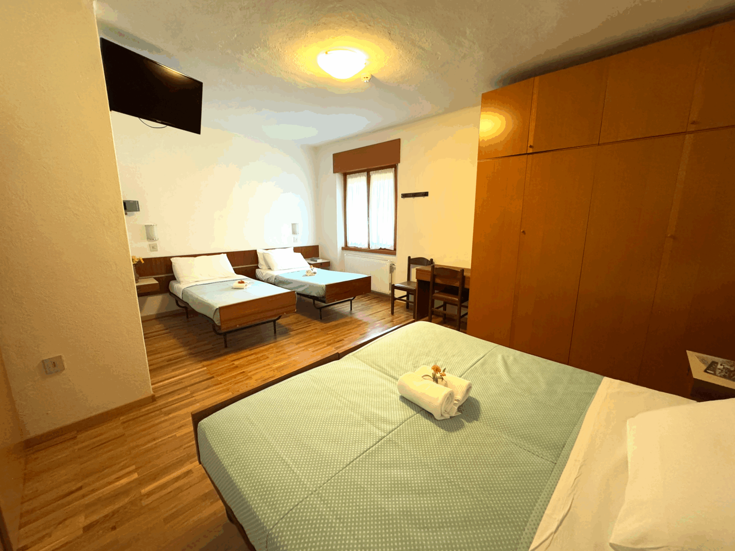 L’ Hotel dispone di 80 camere (servite da ascensori) quasi tutte con balcone, dotate di telefono e televisore digitale, phon, oltre naturalmente ad offrire un invidiabile vista panoramica sul lago di Molveno e sull’imponente gruppo delle Dolomiti di Brenta.